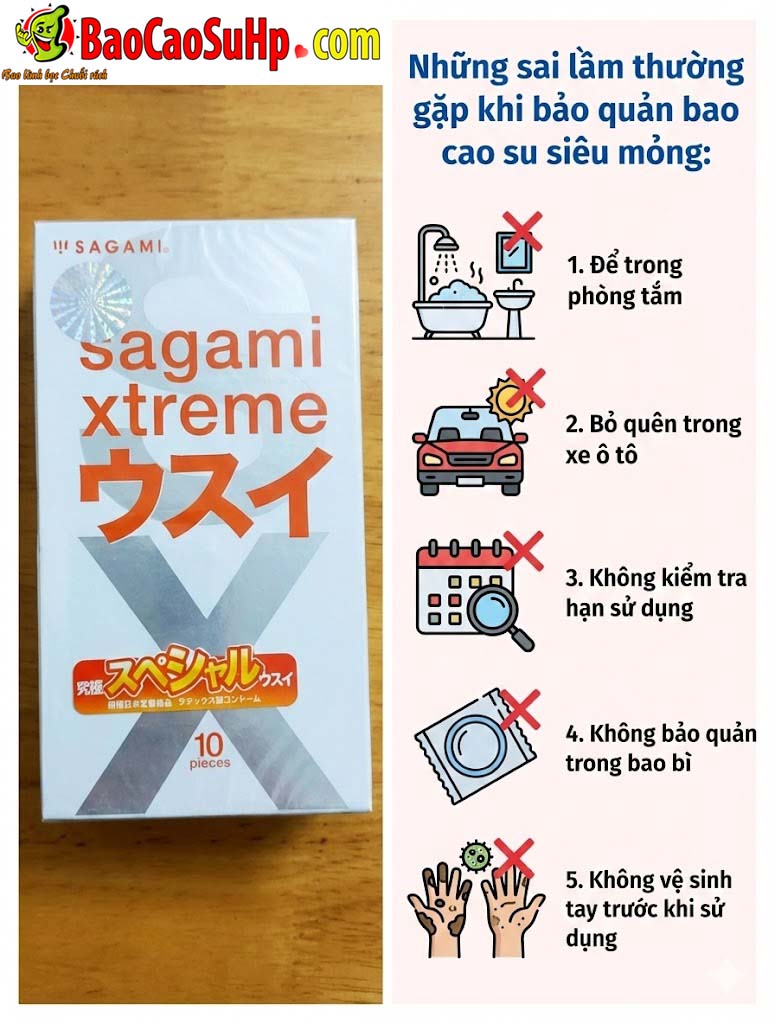 Khi bảo quản bao cao su siêu mỏng, có một số lỗi phổ biến mà người tiêu dùng dễ mắc phải. Những sai lầm này có thể dẫn đến tình trạng bao cao su hỏng và ảnh hưởng đến sức khỏe.