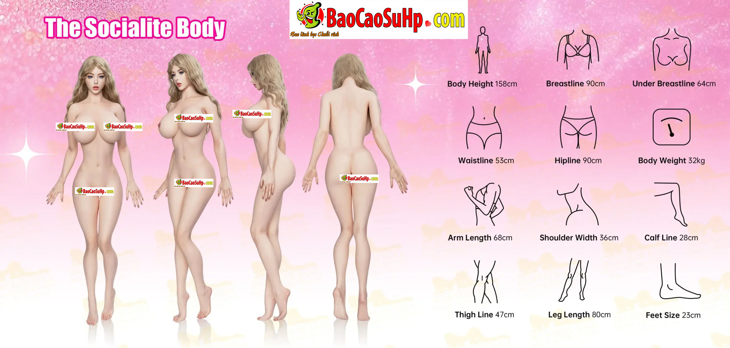 Body: 158cm – 165cm (chuẩn chiều cao người Việt dễ thao tác), Dáng Curvy.