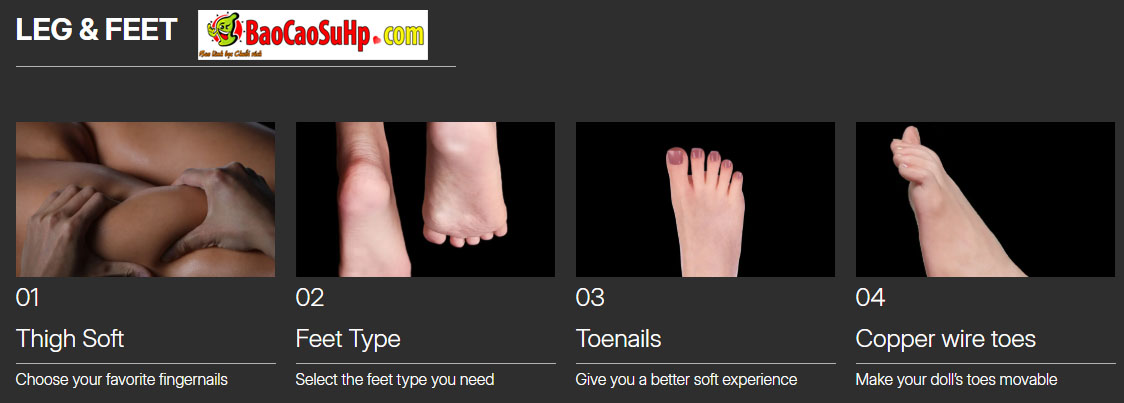 Dưới đây là các tùy chọn nâng cao để quý khách cá nhân hóa “bạn tình” của mình, từ cấu trúc xương, cảm giác xúc giác đến thẩm mỹ bên ngoài.
