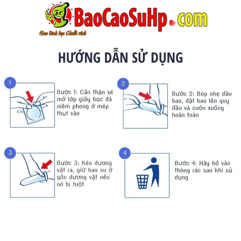 - Bước 2: Bóp nhẹ đầu bao để đẩy không khí ra ngoài, đặt bao lên quy đầu và cuộn xuống hoàn toàn.