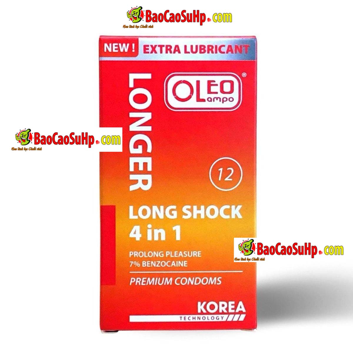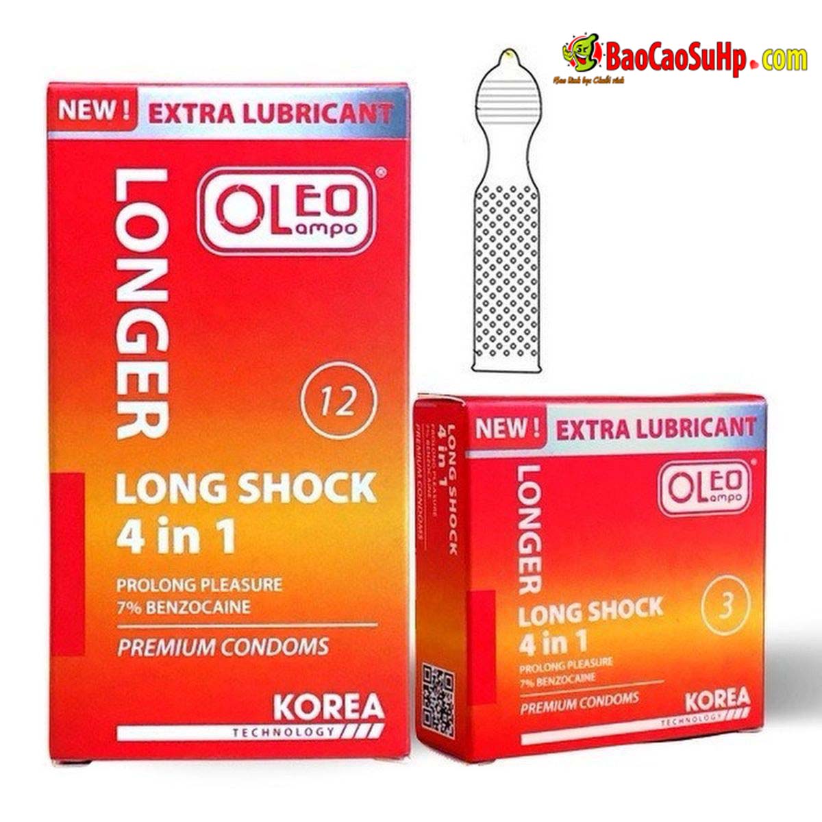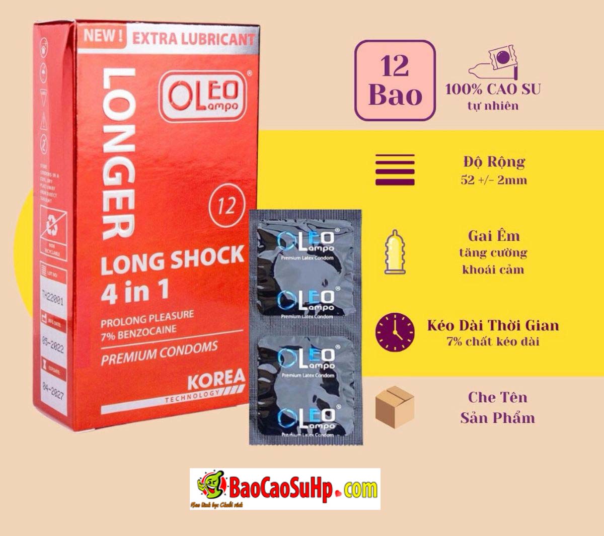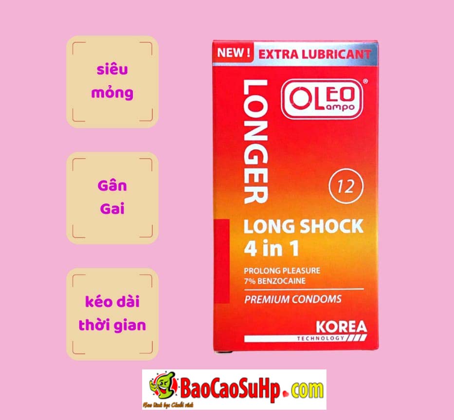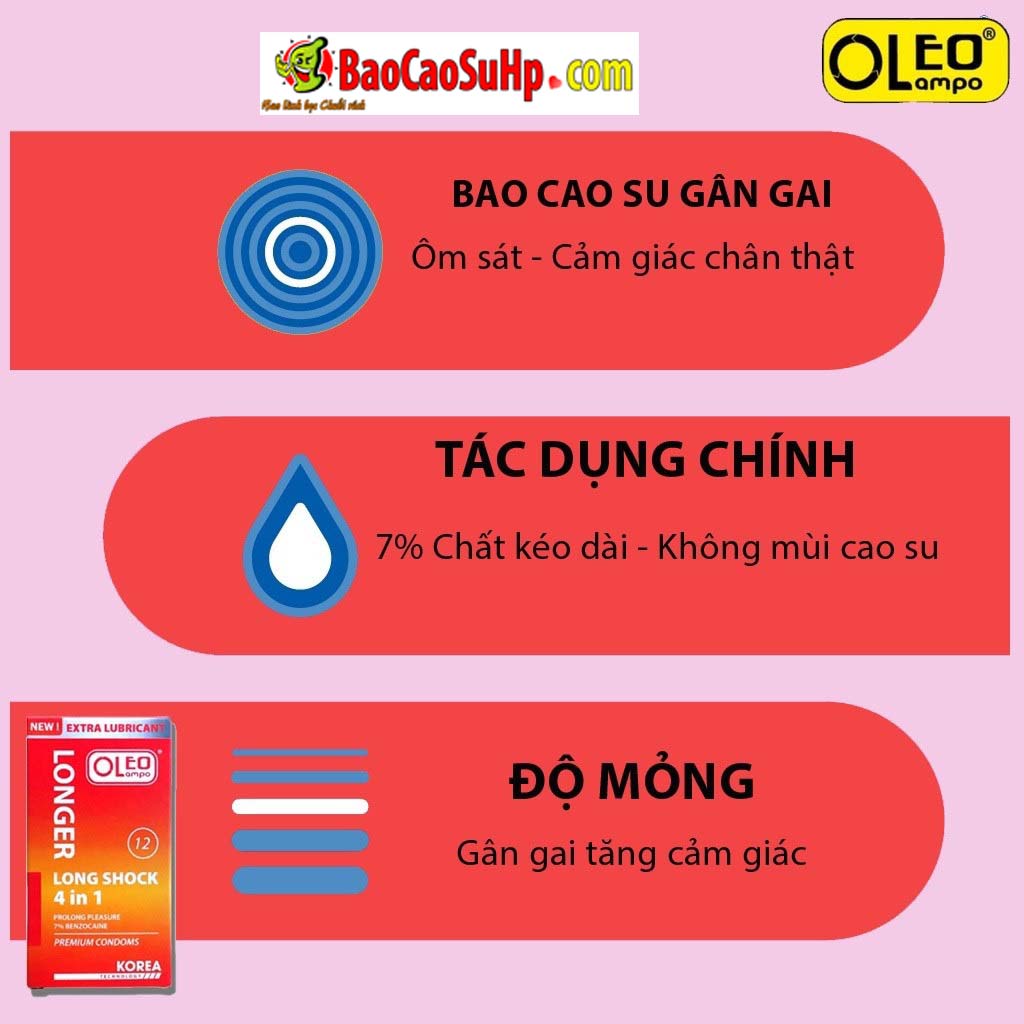 Bao cao su Oleo Lampo 4in1 Longer Longshock Kéo dài 7%, 500g gai, bạc hà, Gel silicone