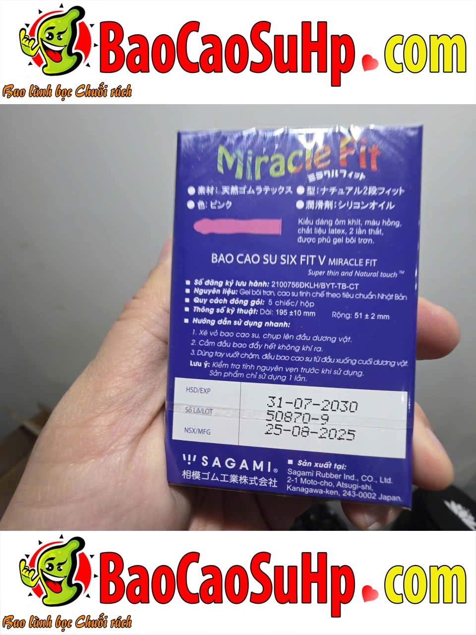 Bao cao su SAGAMI Nhật Bản Miracle Fit size nhỏ ôm khít 3D 49mm hộp 5C