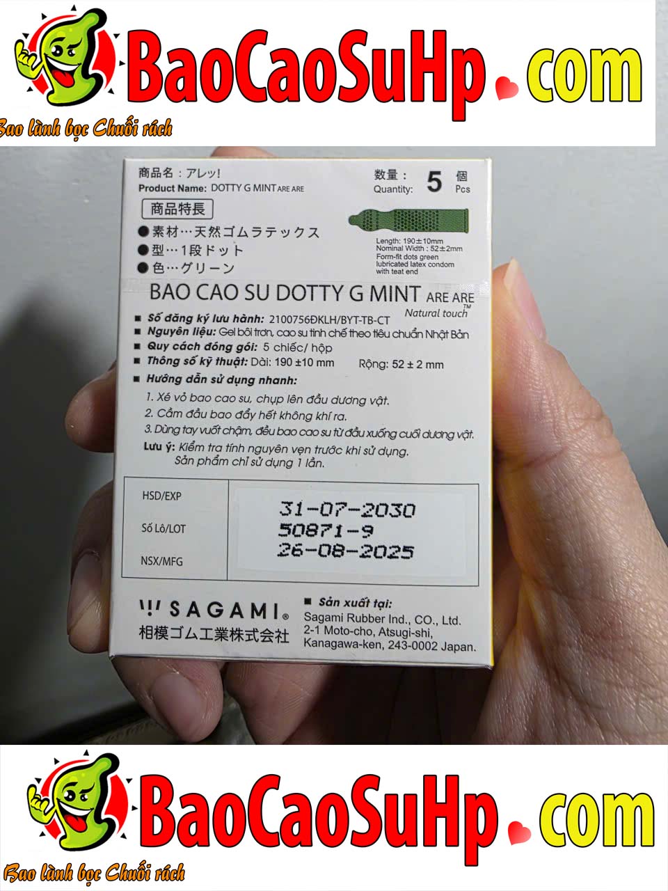 Bao cao su Sagami Nhật Bản siêu mỏng Are Are DOTTY G MINT gai gân bọt biển 5C
