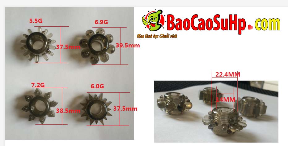Trọng lượng từng vòng: 5.5g, 6.0g, 6.9g, và 7.2g.