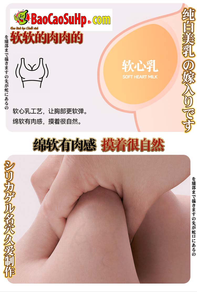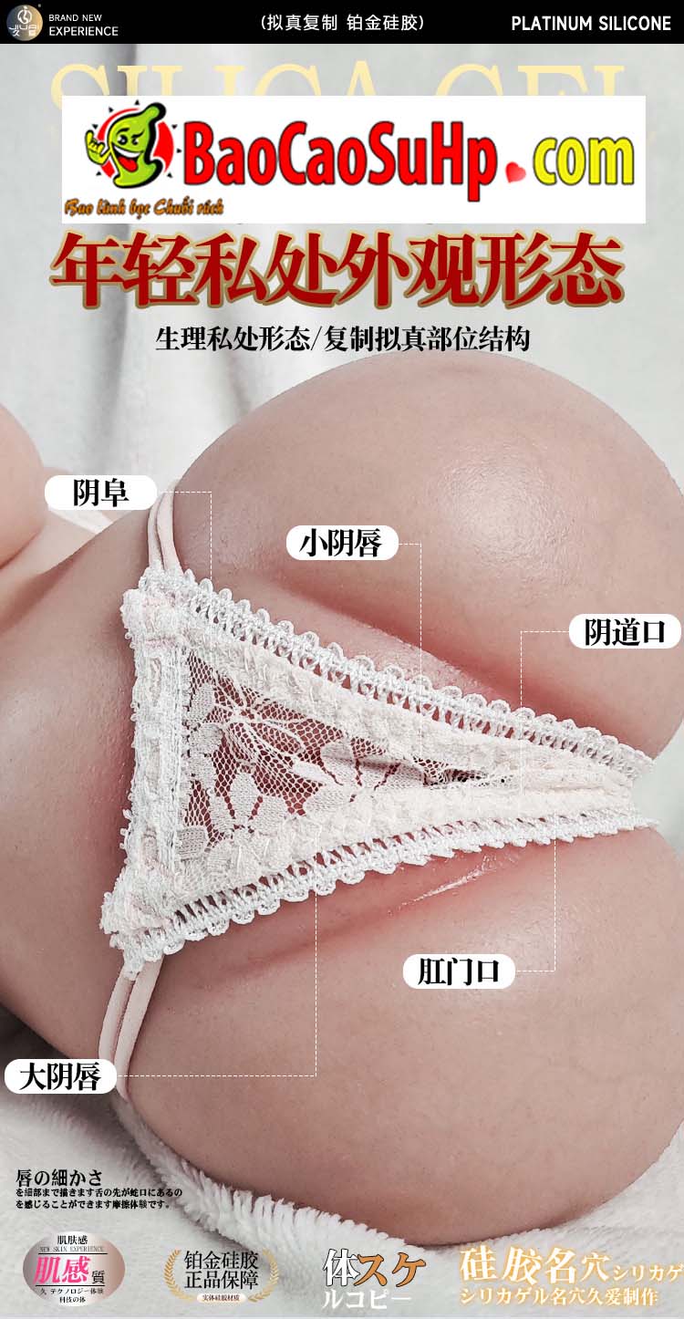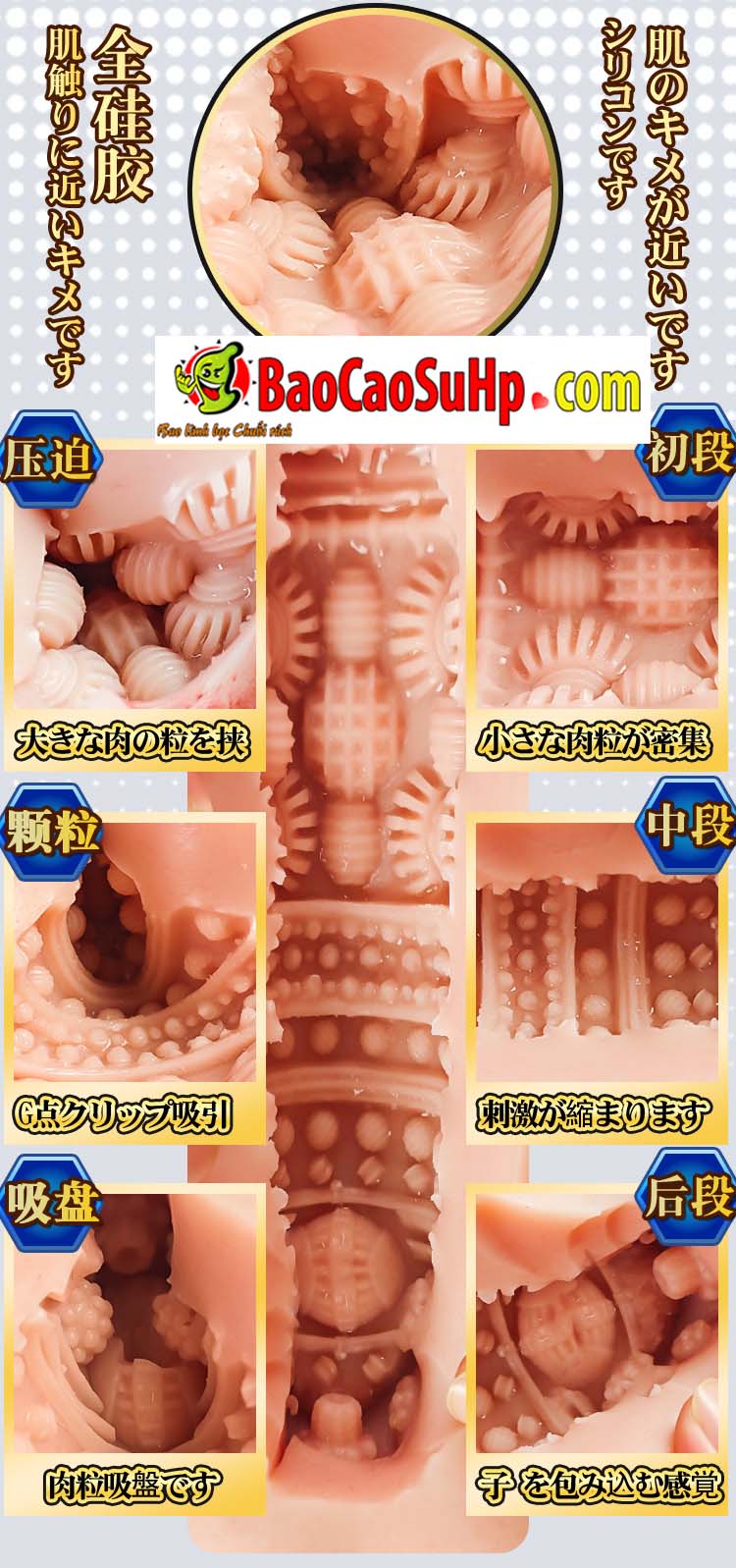 Khu vực nhạy cảm: Được mô phỏng theo cấu trúc giải phẫu chuẩn với đầy đủ âm vật, môi lớn, môi bé và lỗ hậu môn. Đặc biệt, các nếp gấp bên trong (mật đạo) được thiết kế đa tầng để tăng cảm giác ma sát.