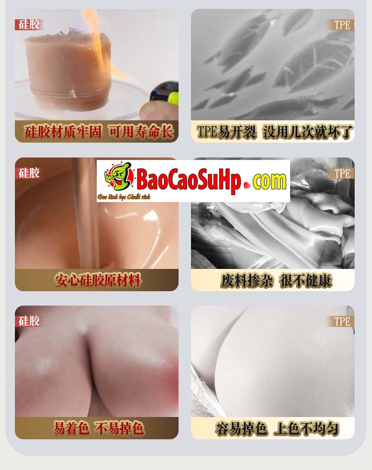 Sản phẩm được đúc từ Platinum Silicone (Silicon bạch kim) hay còn gọi là Silicon lỏng cao cấp. Đây là vật liệu an toàn cấp thực phẩm, có độ bền gấp nhiều lần so với các dòng TPE thông thường.