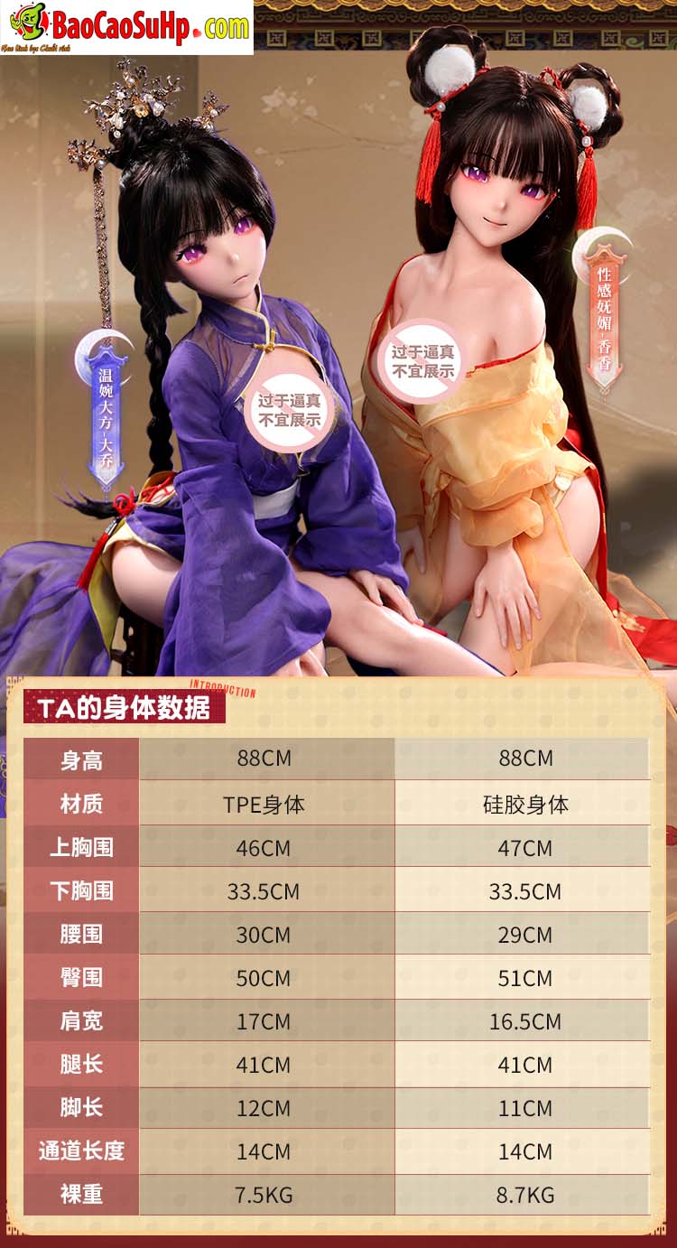 - Nhược điểm: Chiều cao 88cm mang hình thể của một bé gái loli, sẽ không tạo được cảm giác lấp đầy, đè nén đẫy đà như búp bê người lớn 1m60. Chất liệu TPE đòi hỏi sự chăm sóc kỹ lưỡng sau mỗi lần chơi (phải đánh phấn thường xuyên) và rất dễ bị lem màu nếu mặc quần áo tối màu.