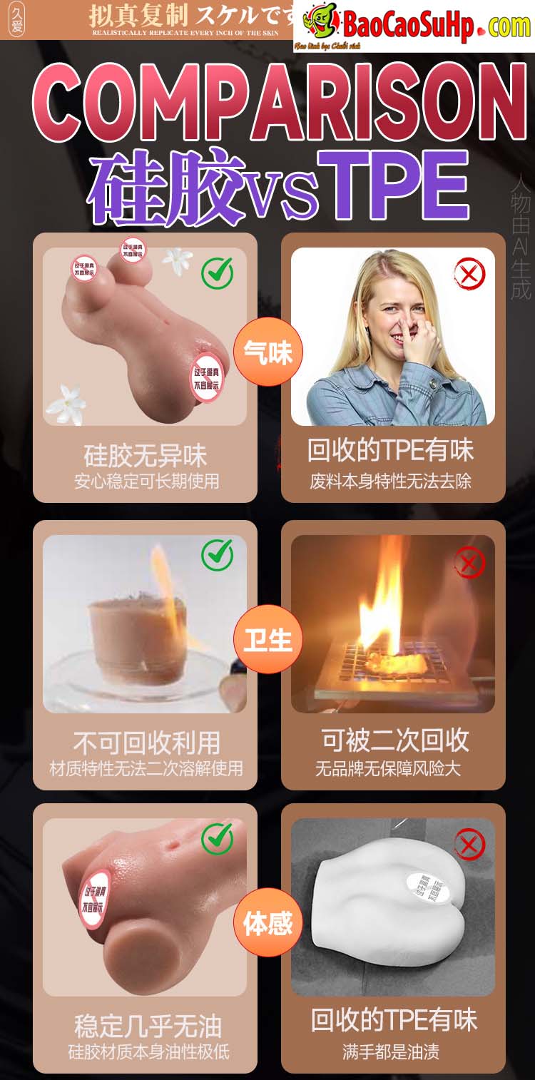 Nhược điểm: Do làm từ silicon nguyên khối nên giá thành cao hơn nhựa TPE. Kích thước 610g – 745g thuộc dòng cầm tay, không quá to như các loại búp bê cả người, nhưng bù lại rất dễ cất giữ bí mật và linh hoạt khi sử dụng.