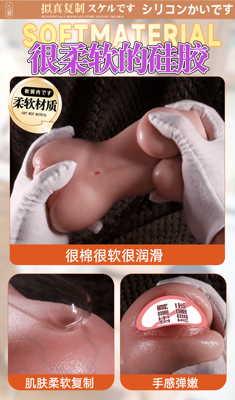 Sản phẩm được làm từ Soft Fat Material (Silicon mỡ mềm). Khi bạn ấn tay vào, khối silicon sẽ lún sâu và đàn hồi chậm, cảm giác mướt và mọng y hệt như bánh Mochi Nhật Bản. Đây là chất liệu cao cấp nhất hiện nay: không độc hại, không mùi và tuyệt đối không tiết dầu gây bẩn ga giường.