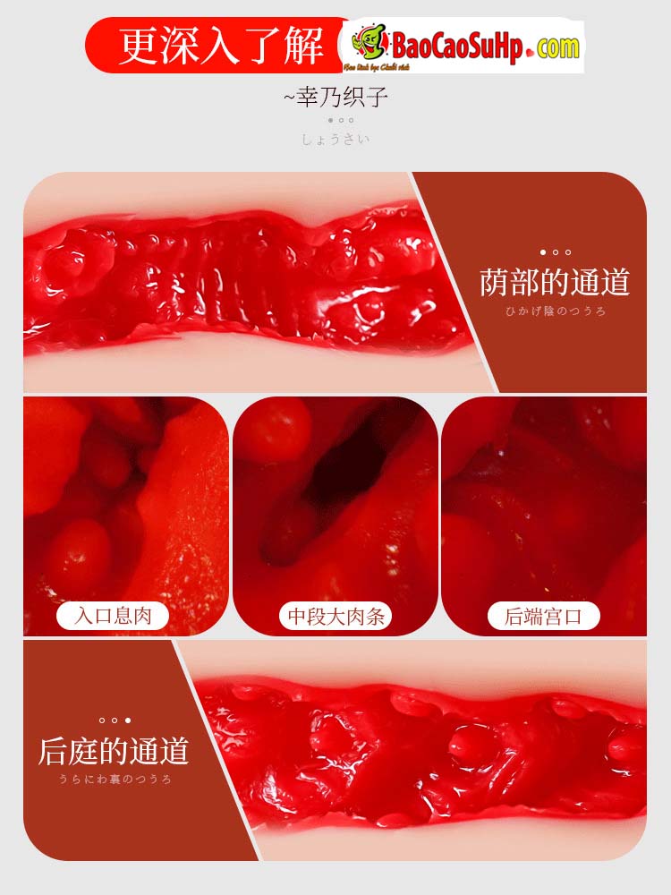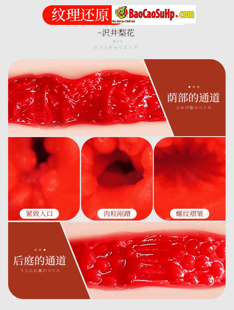 Sản phẩm được trang bị 2 lối vào riêng biệt (Âm đạo và Hậu môn), mang lại trải nghiệm đa dạng cho người dùng:- Kênh Âm Đạo (Lối trước): Thiết kế cửa vào khít chặt, bên trong bố trí hệ thống các hạt thịt cọ xát và nếp gấp vân xoắn ốc liên tiếp, mô phỏng cấu trúc cổ tử cung ở đoạn cuối.