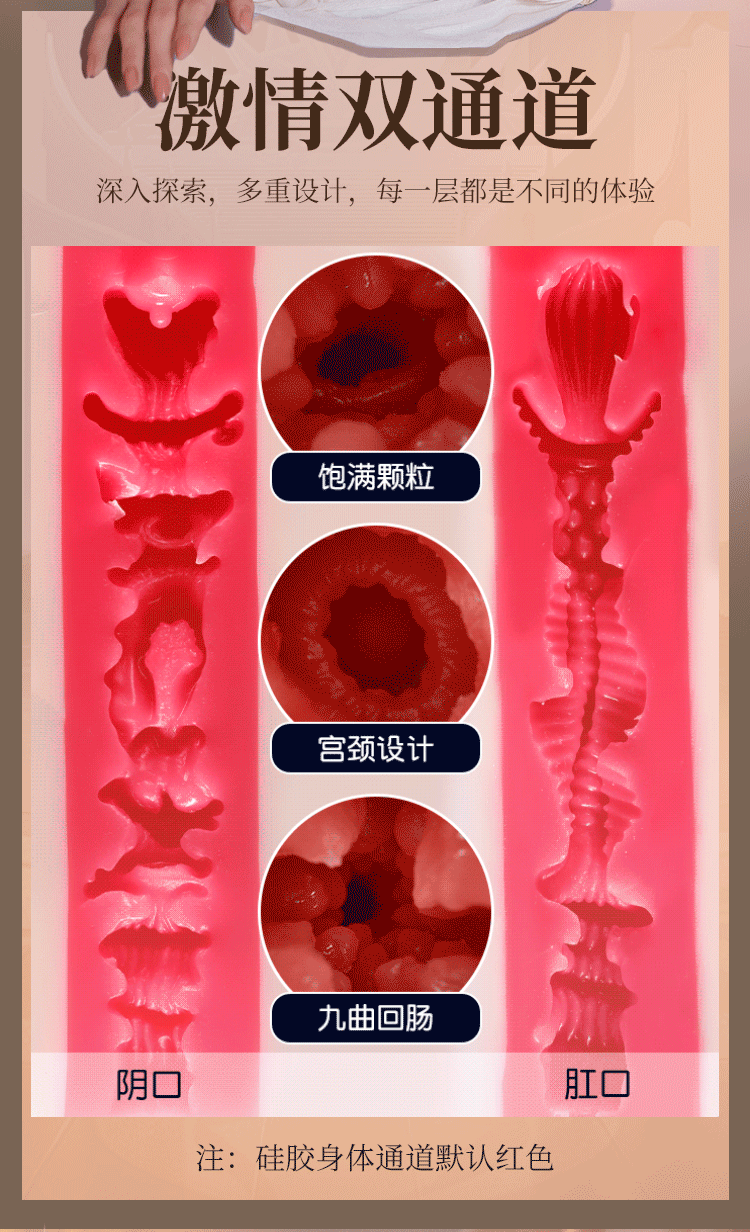 Cấu trúc đa luồng: Tích hợp 3 lỗ (Miệng, Âm đạo, Hậu môn) với thiết kế khoang sâu, nhiều rãnh gân nổi bên trong để tối đa hóa ma sát.