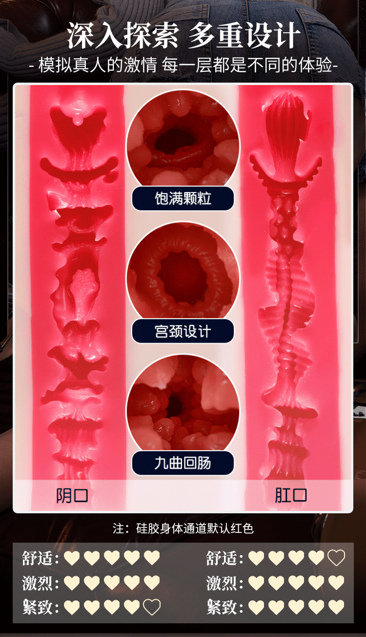 Cấu tạo bên trong: Đường hầm được thiết kế 3D phức tạp với các nếp gấp cổ tử cung, các hạt nổi kích thích và cấu trúc “Cửu khúc hồi tràng” (9 khúc uốn lượn) để tạo ma sát tối đa.