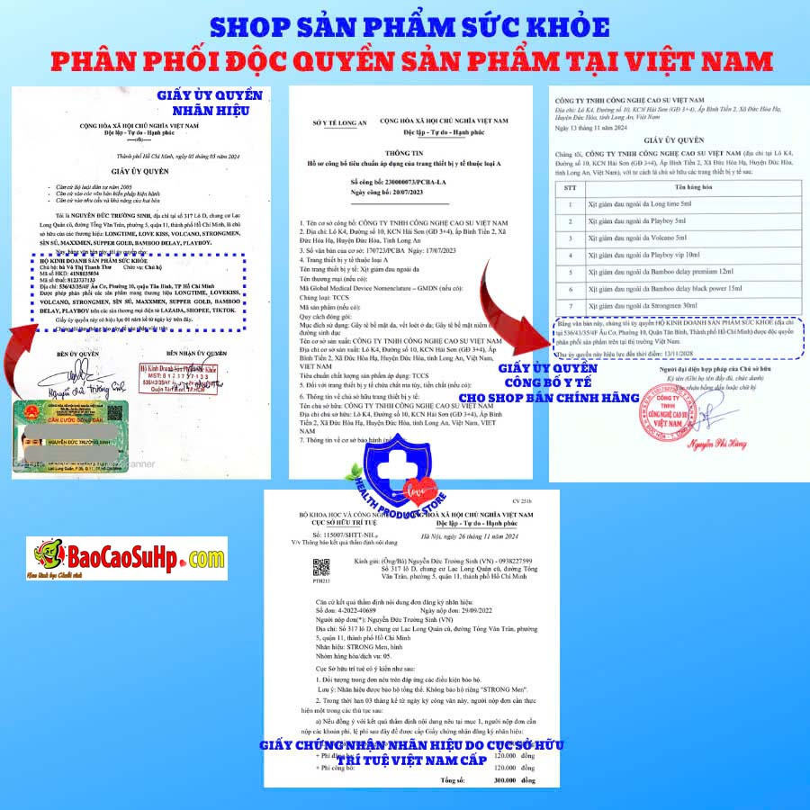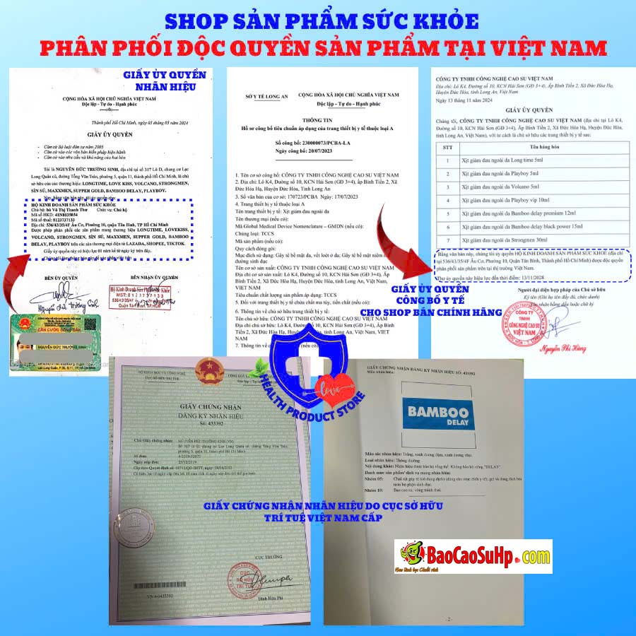 Khác với các sản phẩm trôi nổi không rõ nguồn gốc, Bamboo Delay Spray được nhập khẩu chính ngạch và phân phối độc quyền bởi Công ty TNHH Công nghệ Cao su Việt Nam. Sự uy tín của sản phẩm được khẳng định qua các yếu tố pháp lý minh bạch: