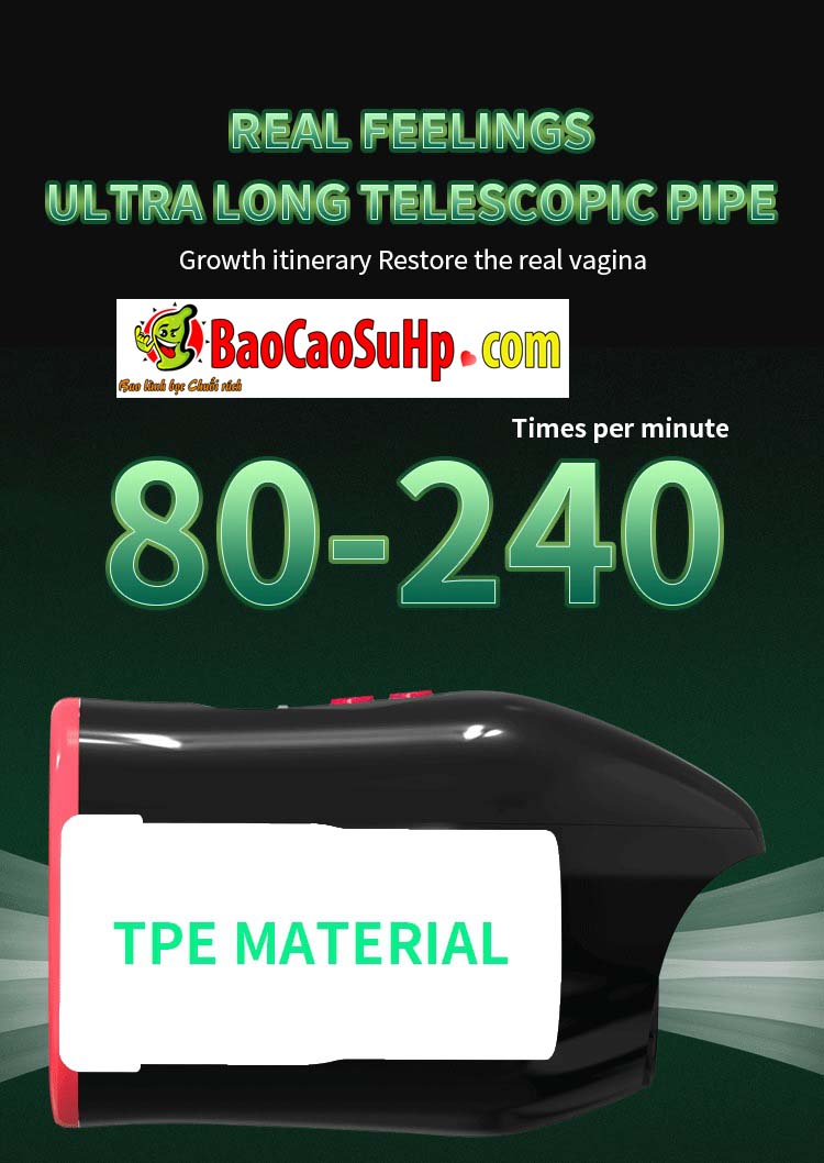 - Cơ chế thụt thò tự động: Máy sở hữu hành trình thụt siêu dài (Ultra long telescopic distance), mô phỏng chính xác sự co giãn và ma sát của “cô bé” thật. Tốc độ thụt thò dao động với tần suất cực cao từ 80 đến 240 nhịp/phút, tạo ra những đợt sóng khoái cảm liên tiếp.