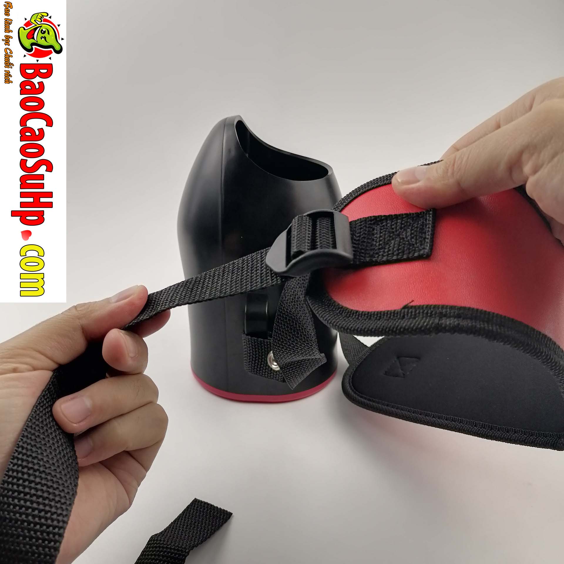 - Lắp thân máy vào đai đeo và siết chặt đai quanh hông hoặc vị trí thuận tiện nhất của bạn.