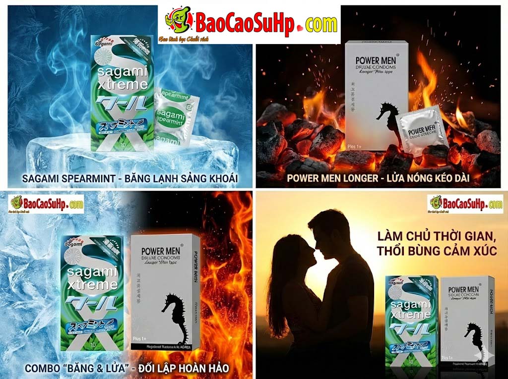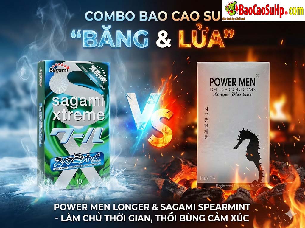Combo Bao cao su “Băng & Lửa”: Power Men Longer & Sagami Spearmint – Làm Chủ Thời Gian, Thổi Bùng Cảm Xúc
