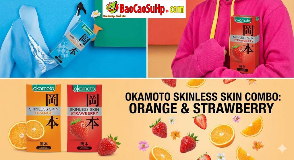 Trong tình yêu, mùi hương là chất xúc tác mạnh mẽ nhất để đánh thức các giác quan. Nếu bạn đã quá nhàm chán với mùi cao su đơn điệu hoặc muốn tìm kiếm những trải nghiệm mới mẻ cho màn dạo đầu, thì Combo Okamoto Skinless Skin Orange & Strawberry chính là sự lựa chọn hoàn hảo. Sự kết hợp giữa vị Cam tươi mát và Dâu Tây ngọt ngào mang đến một “bữa tiệc” cảm xúc đa dạng, giúp bạn và người ấy thay đổi hương vị yêu mỗi ngày với mức giá tiết kiệm hơn.