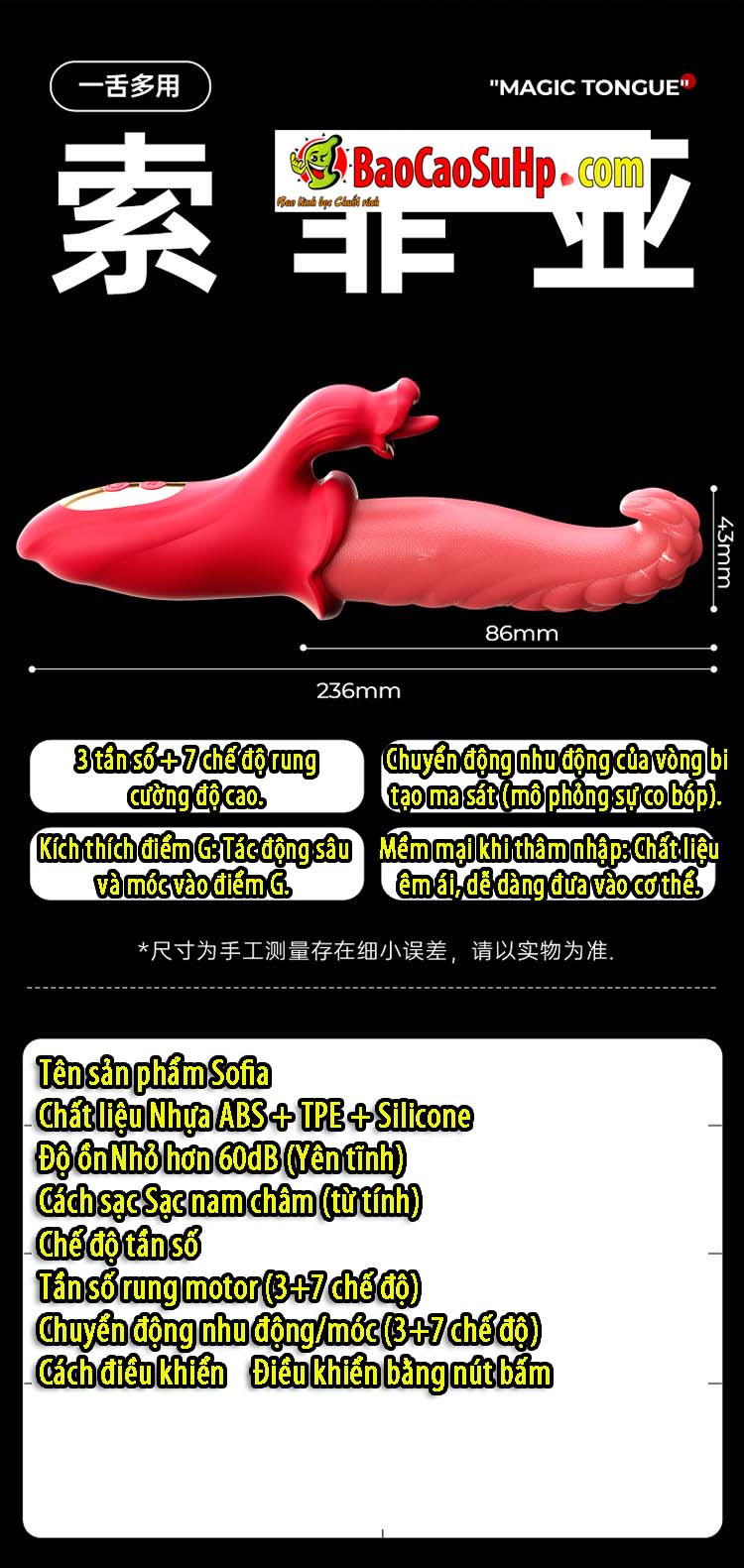 Tên sản phẩm: Dương vật giả rung lưỡi Sofia (Suofeiya).