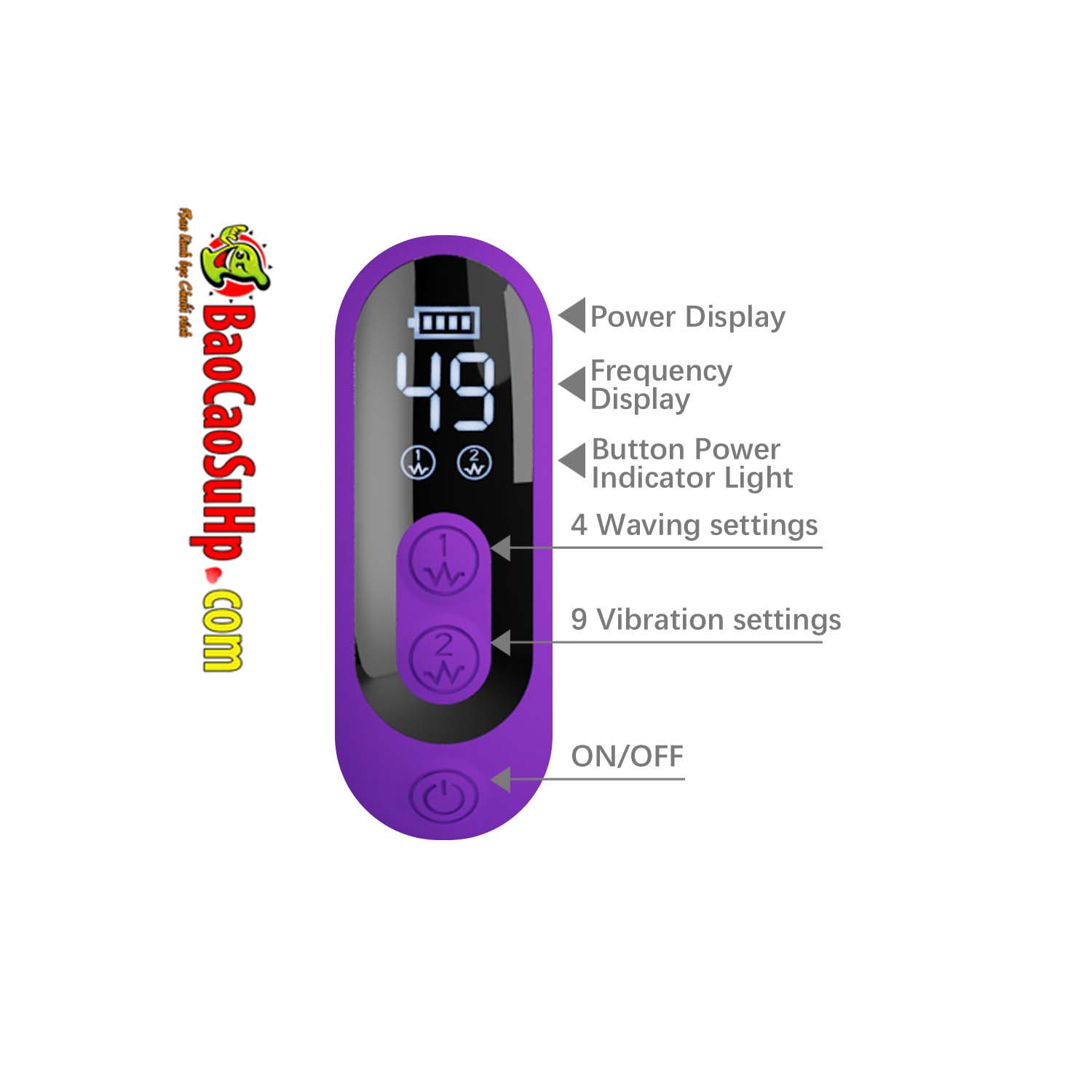 Sử dụng: Nhấn giữ nút nguồn (ON/OFF) để khởi động. Sử dụng nút (1) để điều chỉnh 4 chế độ sóng/thụt và nút (2) để thay đổi 9 chế độ rung. Nên kết hợp cùng gel bôi trơn gốc nước để đạt cảm giác mượt mà nhất.
