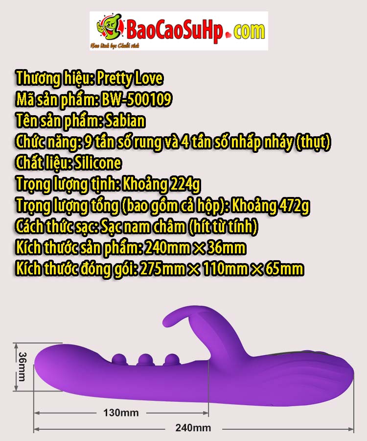 Dương vật giả tai thỏ LCD đa chức năng Prettylove Sabian Silicone kháng khuẩn