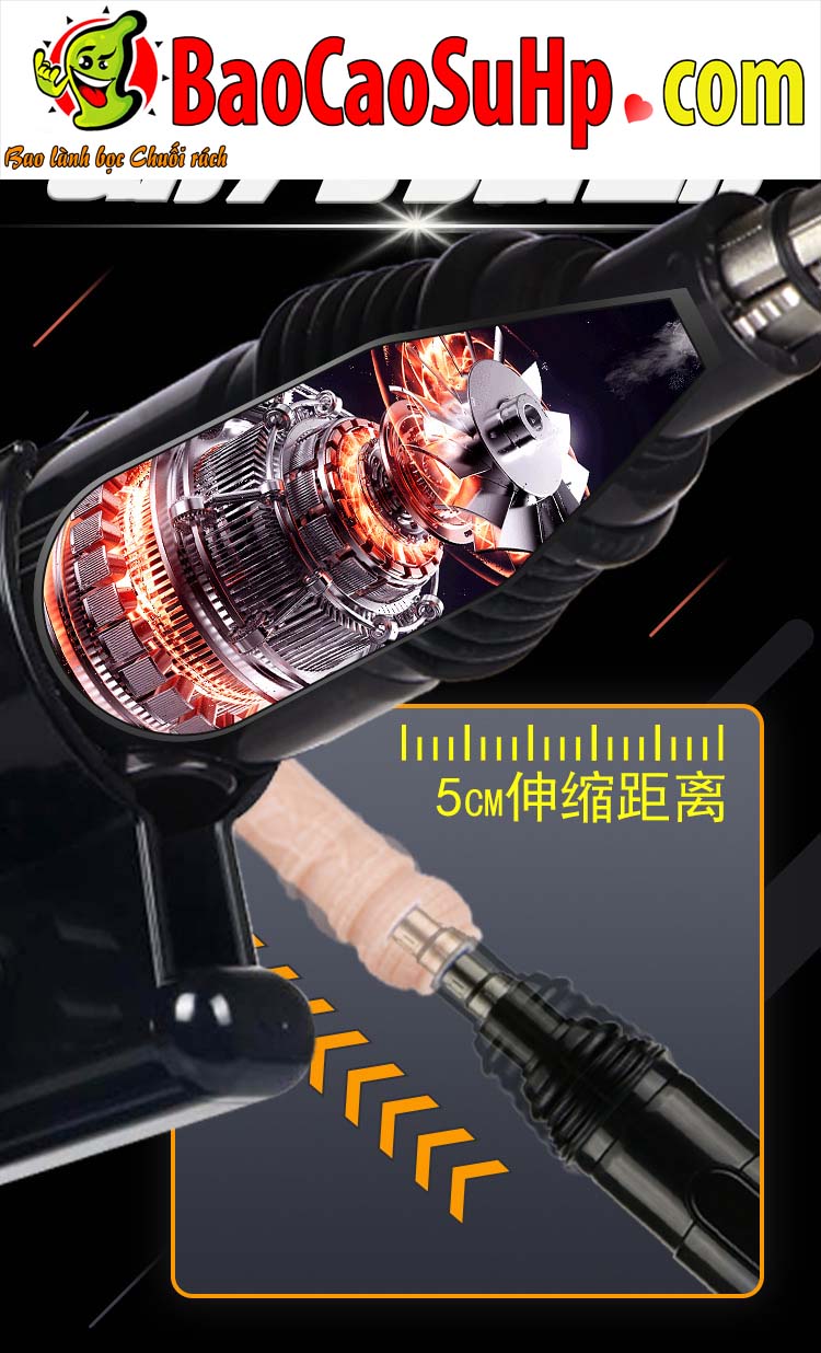 - Khóa chốt 3 chân an toàn: Trục kết nối sử dụng thiết kế 3 lỗ cắm (3-pin) với một chốt khóa bằng kim loại (挡片) giúp dương vật giả không bao giờ bị văng ra ngoài dù máy đang thụt ở tốc độ cao nhất.