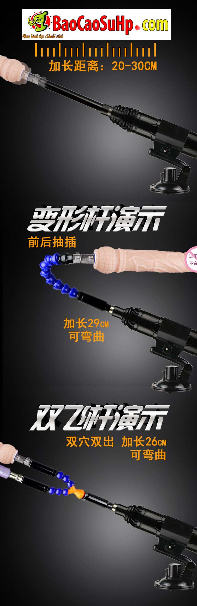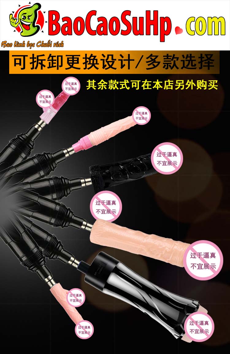 - Tháo rời: Bắt buộc phải nhấn mạnh chốt khóa kim loại (挡片) xuống thì mới được rút đầu dương vật giả ra. Tuyệt đối không dùng sức kéo bạo lực làm gãy ngàm.