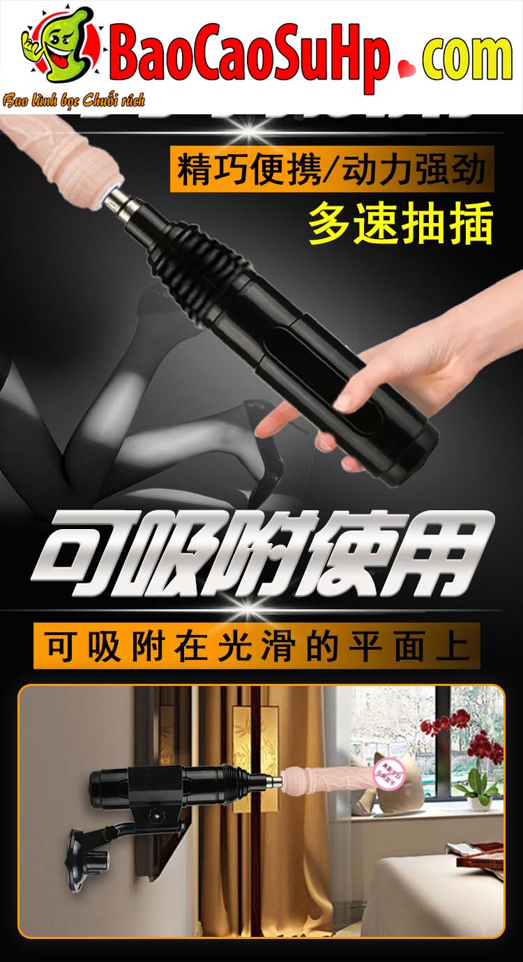 Ưu điểm: Thiết kế 3 trong 1 siêu đa năng: có thể cầm tay thâm nhập, hút dính chặt trên tường phòng tắm hoặc hút xuống sàn nhà. Lực hút bám dính cực kỳ khủng khiếp. Hành trình thụt 5cm tốc độ cao mang lại cảm giác cực bốc. Điện áp 9-24V cực kỳ an toàn, loại bỏ nỗi lo hết pin giữa chừng. Có vô số phụ kiện tùy biến theo sở thích cá nhân.