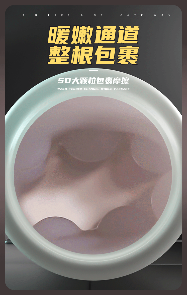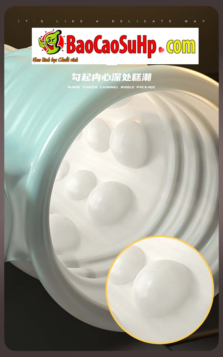 Lõi bên trong là lớp “kênh dẫn ấm áp và mềm mại” (warm tender channel), mang lại cảm giác êm ái, thân thiện với làn da. Thay vì bề mặt nhẵn chán ngắt, thành ống được đúc nguyên khối với 50 hạt sần lớn liên tục cọ xát. Đặc biệt, khu vực đỉnh đầu được bố trí các hạt siêu lớn kết hợp với thiết kế thắt chặt mô phỏng vòng eo, trực tiếp kích thích vào những điểm nhạy cảm nhất.