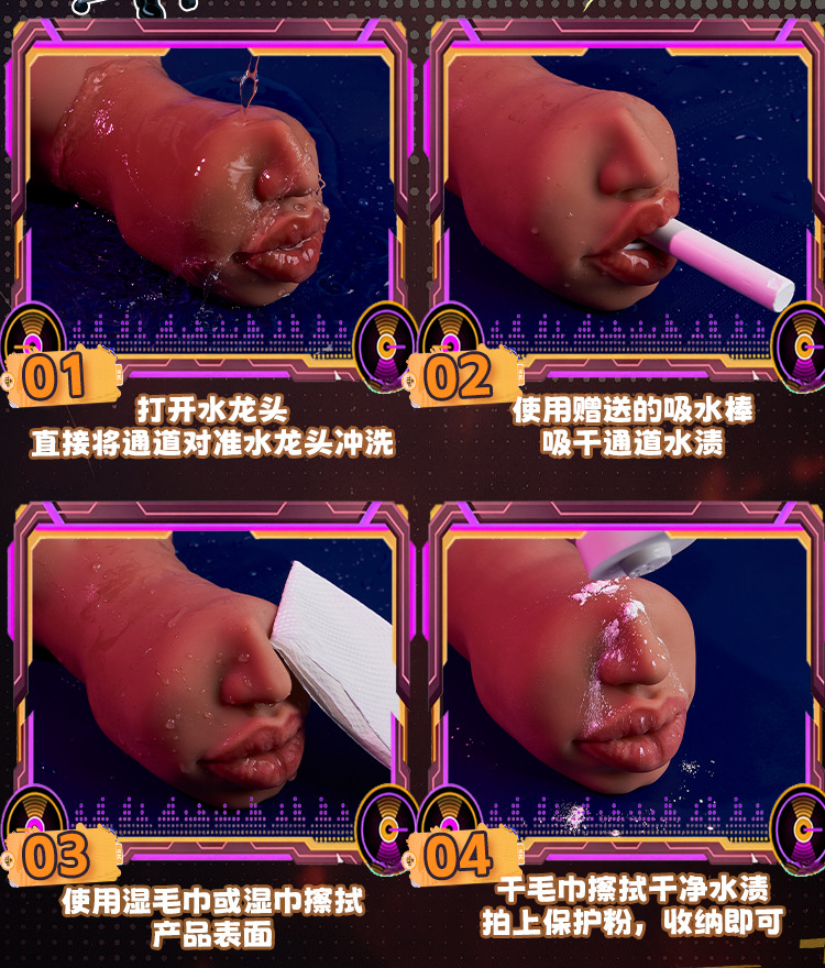 Lưu ý không ngâm tắm sản phẩm trôi mất lớp phấn dầu bên ngoài , các sản phẩm động cơ tốt nhất nên mua que ngoáy hoặc sử dụng que đũa gắn đầu là tấm mút lau bảng tẩm nước vệ sinh để ngoáy không nên xả nước hỏng động cơ. (Hoặc an toàn hơn là dùng bao cao su thì sẽ tránh làm bẩn bên trong sản phẩm không phải xả nước vệ sinh lại