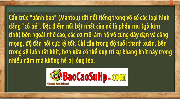 Sản phẩm được lấy cảm hứng từ cấu trúc “Mantou” (dạng hình bánh bao) nổi tiếng trong giới sành điệu. Đặc điểm nổi bật nhất của cấu trúc này là phần mu nhô cao, hai bên môi âm hộ vô cùng đầy đặn, căng mọng và sở hữu độ đàn hồi tuyệt vời. Thiết kế mô phỏng lại vẻ đẹp thanh xuân, mang đến độ bó sát hoàn hảo và duy trì được sự khăng khít trong nhiều năm mà không bị nới lỏng.