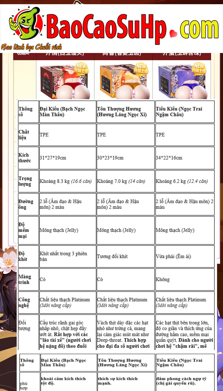 Để khách hàng dễ dàng lựa chọn, bộ sưu tập được chia làm 3 mỹ nhân với thông số và cấu trúc hoàn toàn từ chất liệu TPE cao cấp (đảm bảo 100% không sử dụng silicone theo đúng chuẩn y tế an toàn của hãng):