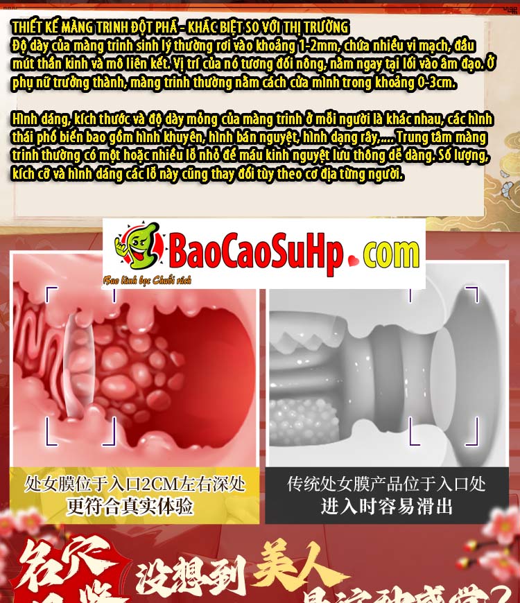 Đặc biệt, màng trinh nhân tạo (ở hai phiên bản Qiao Qian và Shang Xiang) được thiết kế đột phá, nằm sâu khoảng 2cm bên trong ống đạo, khắc phục hoàn toàn nhược điểm dễ trượt ra ngoài của các sản phẩm truyền thống, mang lại cảm giác “phá vỡ” chân thực nhất.