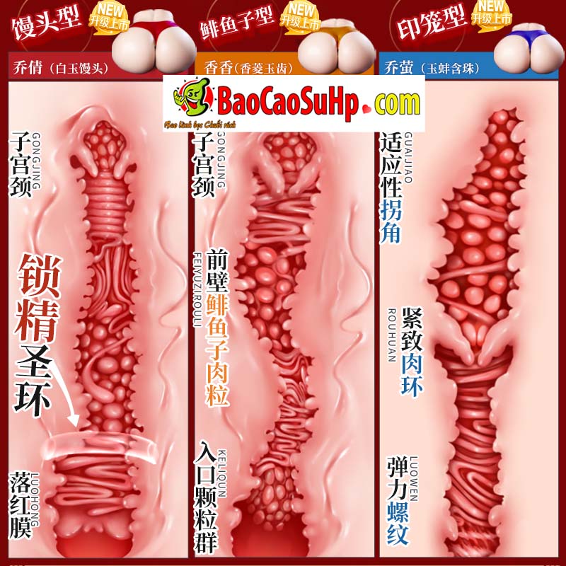 (Lưu ý: Tất cả các phiên bản đều có 2 lỗ: Âm đạo và Hậu môn với hai màu sắc rãnh khác nhau).