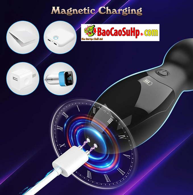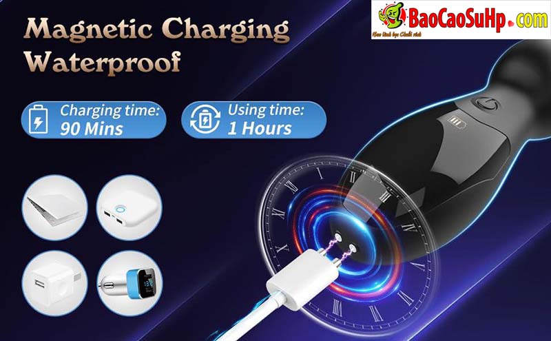 Thời lượng pin: Vui lòng sạc đầy trước lần sử dụng đầu tiên. Khi sạc, đèn báo màu trắng sẽ nhấp nháy và sáng liên tục khi đầy. Thời gian sạc đầy khoảng 90 phút, mang lại thời gian sử dụng liên tục lên đến 1 giờ. Lưu ý khi pin yếu, cường độ rung sẽ giảm đi.